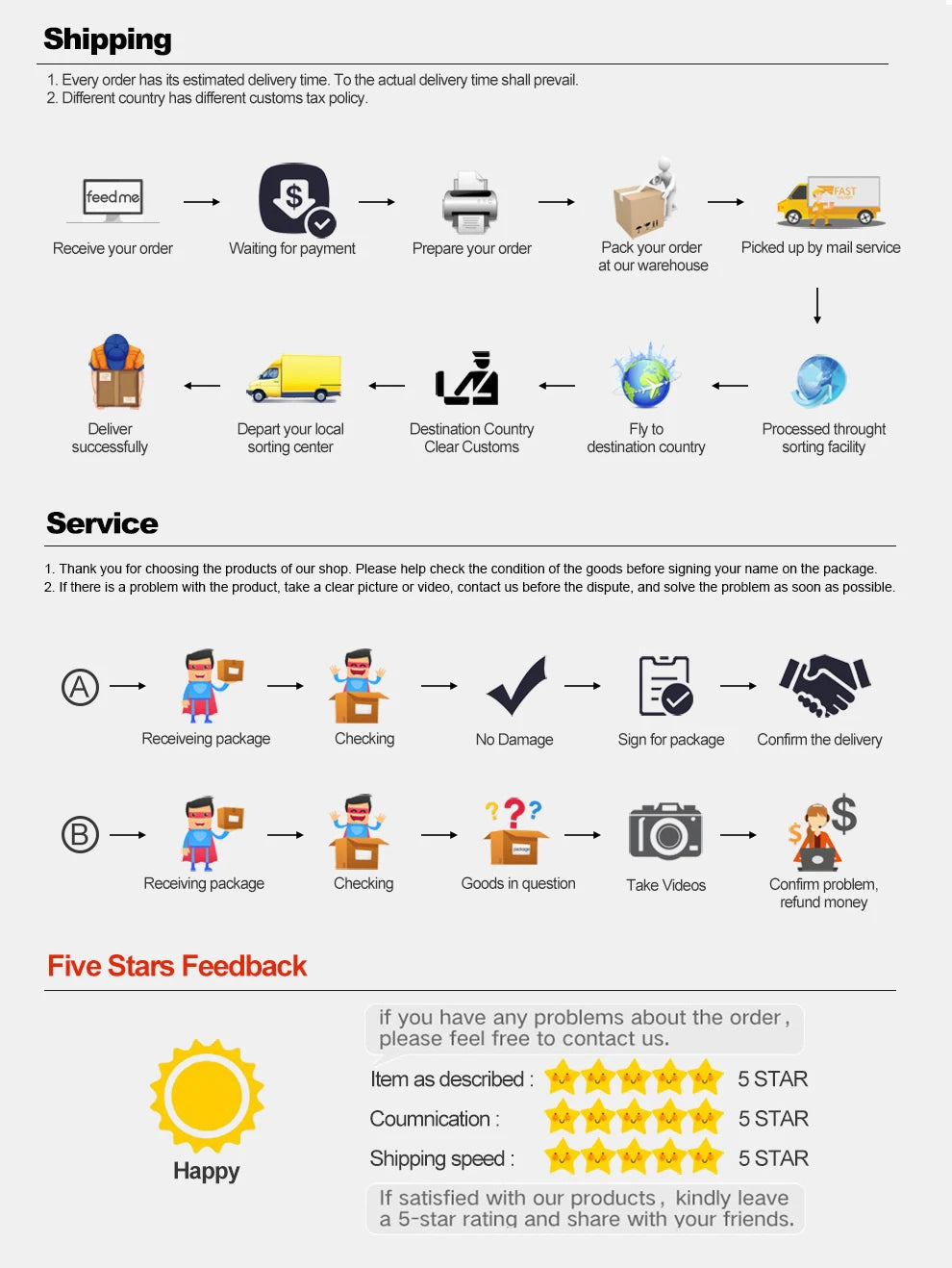 If there is any problem with the product within 7 days after receiving the package, contact our professional customer service, please provide us with video proof and we will give you a solution, we will provide a replacement or refund after confirming the problem.